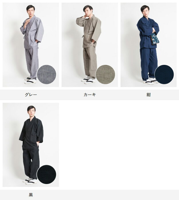 麻混 作務衣 全4色 麻混素材で夏を涼しく、和の暮らしに彩りを。