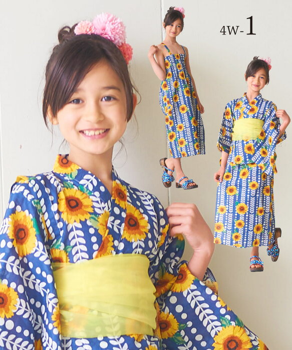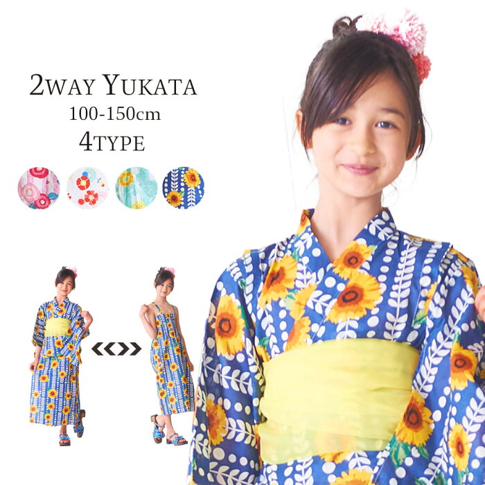 【お買い物マラソン・激得クーポン配布中ッ!】子供 2way 浴衣 サンドレス 3点セット 4柄 6サイズ 100cm 110cm 120cm 130cm 140cm 150cm ワンピース浴衣 クリーム ピンク 青紺 モダン&キュート