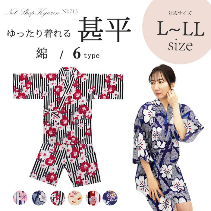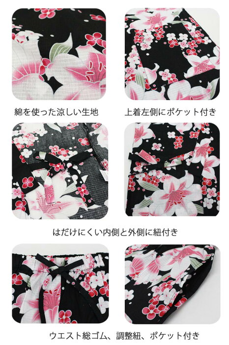 甚平 レディース 半袖 甚兵衛 黒 紺 桃 水 M L 14種類 パジャマ ルームウェア じんべい じんべえ 女性 古典 和柄 夏祭り 浴衣柄 花火
