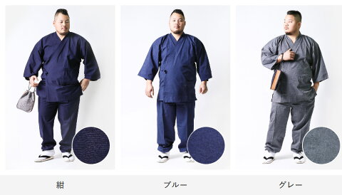 大きいサイズのシンプルな先染めメンズ作務衣。